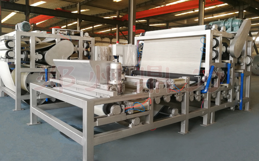 帶式脫水機(jī)具有很強(qiáng)的適應(yīng)性,適合啤酒糟、醬渣、醋糟、藥渣、豆渣、薯渣、土豆渣、甜葉菊渣、菌渣、金針菇下腳料、香油渣等高濕廢料快速脫水,耗電量小,脫水效果好,型號(hào)可定制,且耐用。通常配套滾筒工業(yè)烘干機(jī),可降低廢渣烘干成本,提高烘干效率。