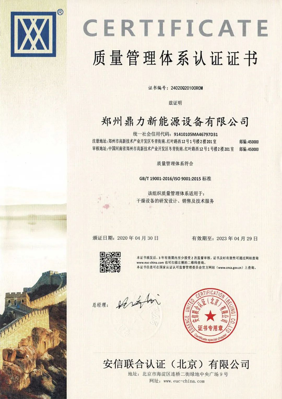 4、2020年4月鄭州鼎力榮獲質(zhì)量管理體系認(rèn)證證書