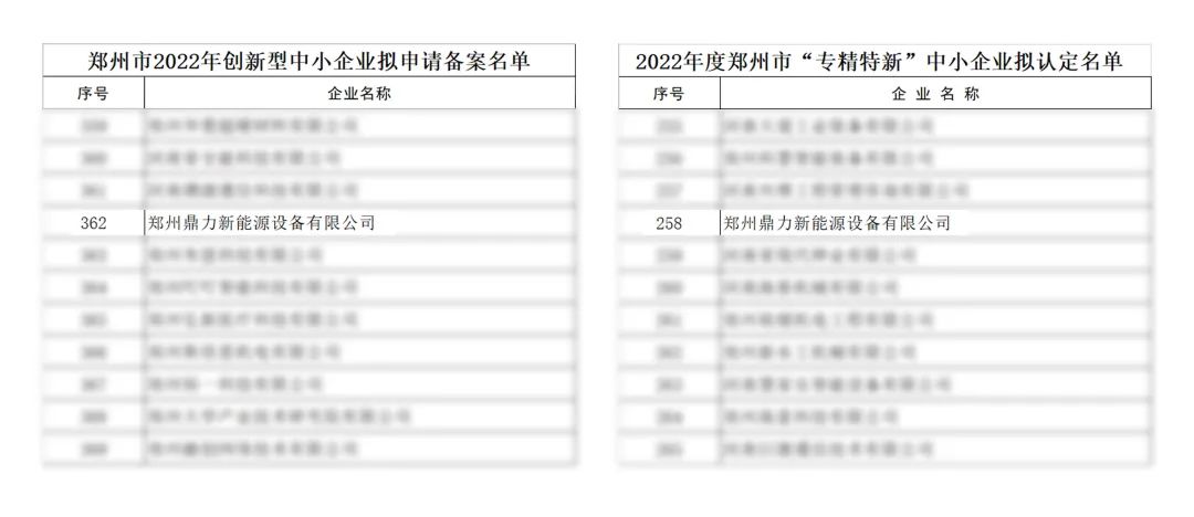 1、2022年度鄭州鼎力獲得2022年度鄭州市“專精特新”中小企業(yè)擬認(rèn)定名單 ;鄭州市2022年創(chuàng)新型中小企業(yè)擬申請(qǐng)備案名單。